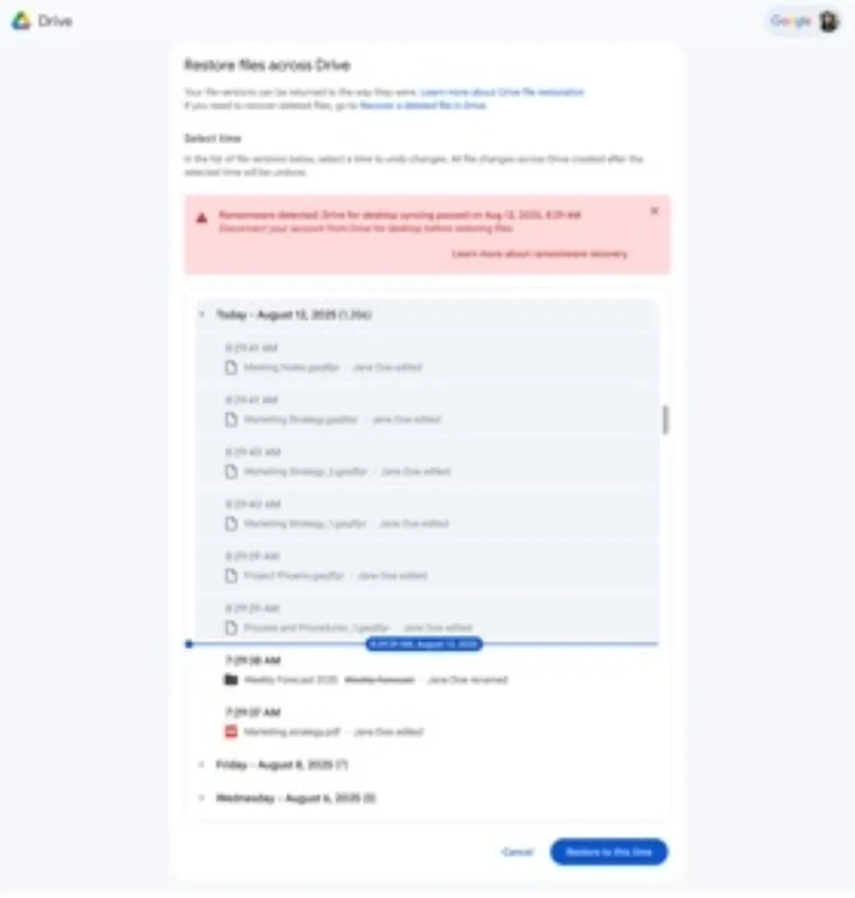 Block ransomware proliferation and easily restore files with AI in Google Drive