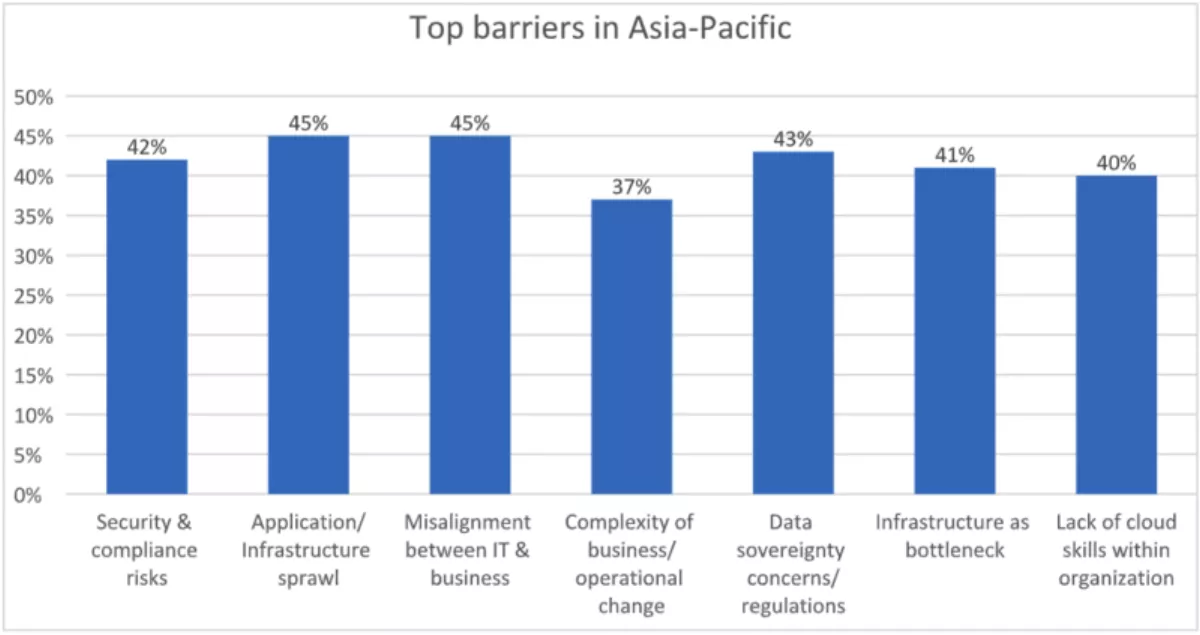 As part of the survey, business and IT leaders in APAC were asked to identify and rank the barriers to their efforts to drive their cloud agenda and achieve their goals.