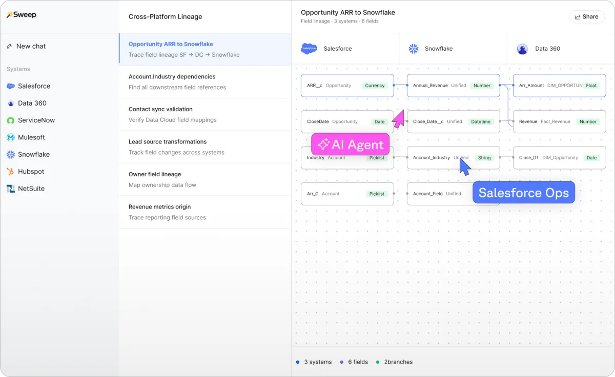 Multi-Org Agent focuses on mapping dependencies, automation, and rules across multiple Salesforce orgs. Sweep says it can generate this context in days rather than months of internal analysis and documentation.